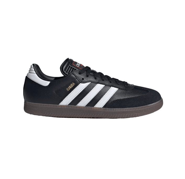 Whether youâre taking to the indoor courts or flexing timeless street style, the Adidas Samba shoe in Core Black/Cloud White/Vivid Red is a legend with decades of soccer heritageânow available at Gallery Streetwear. This essential cleat is designed to showcase sharp skills inside, built with a durable leather upper and suede overlays for classic touch and enhanced abrasion resistance.