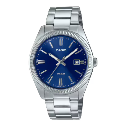 Classic design meets modern precision with the Casio MTP-1302D-2AV Watch in Silver/Blue. This timeless analog timepiece pairs a vibrant deep-blue dial with a polished stainless steel case and band, creating a sleek look that fits perfectly from workdays to weekends. Its understated design delivers a sophisticated edge while keeping true to Casio’s reputation for everyday durability and dependable performance.